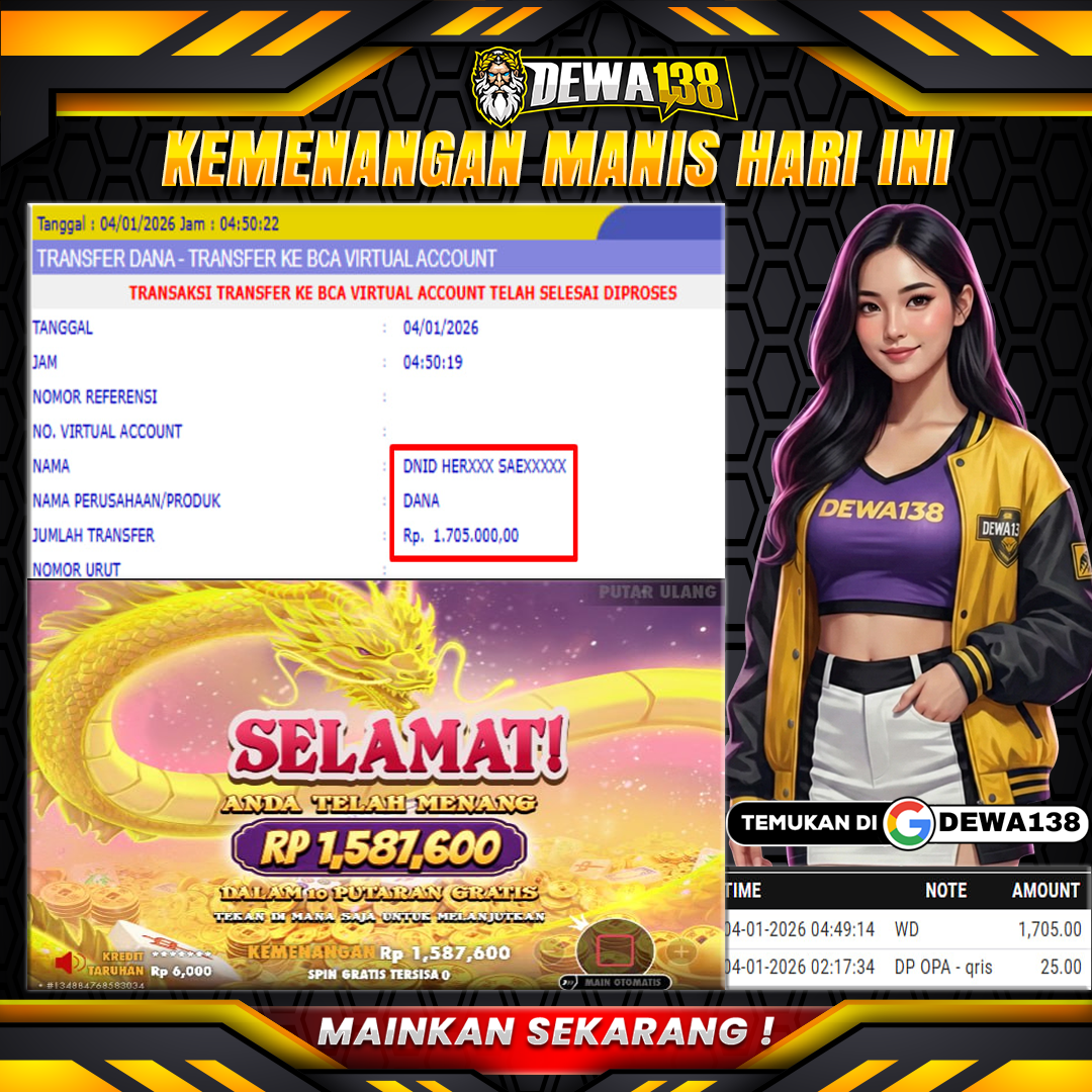 Cek sendiri DEWA138 tempat game jackpot dalam waktu singkat cuma di sini depo 25k bisa withdraw 1,7 juta Sudah di kasih bukti bukan janji yakin ga main?Rugi Dong!